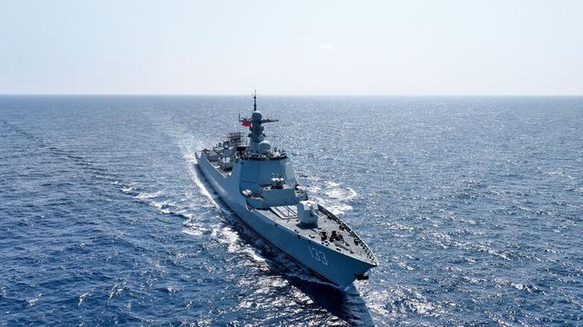 编队核心133号包头舰,是052DL型导弹驱逐舰,L表示舰体加长,优化了反潜和直升机适配。